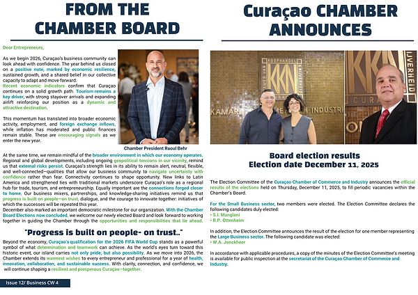 The Election Committee of the Curaçao Chamber of Commerce and Industry announces the official results of the elections held on Thursday, December 11, 2025, to fill periodic vacancies within the